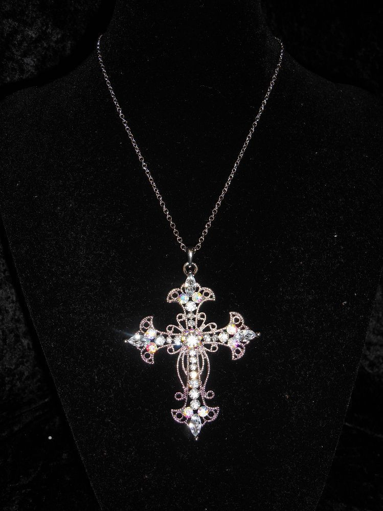 CLEAR & AB AUSTRIAN CRYSTAL CROSS NECKLACE